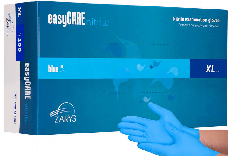 - Rękawice nitrylowe, bezpudrowe Zarys easyCARE – niebieskie (100 szt.) rozmiar XL
