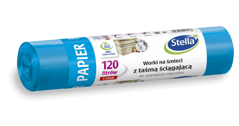 Worki na śmieci do pakowania i segregowania odpadów papierowych. Wotki typu INTERLEAVE – bez odrywania, ten nowatorski system znacznie ułatwia wyjmowanie pojedynczego worka – wystarczy go wysunąć z rolki. Posiadają praktyczną taśmę, która pozwala na szybkie i higieniczne zamknięcie worka oraz jego przenoszenie.