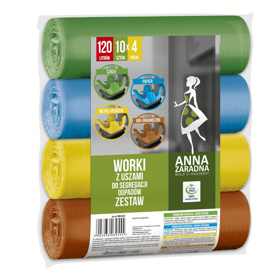 ANNA ZARADNA WORKI Z USZAMI DO SEGREGACJI ODPADÓW ZESTAW 120L 4X10SZT